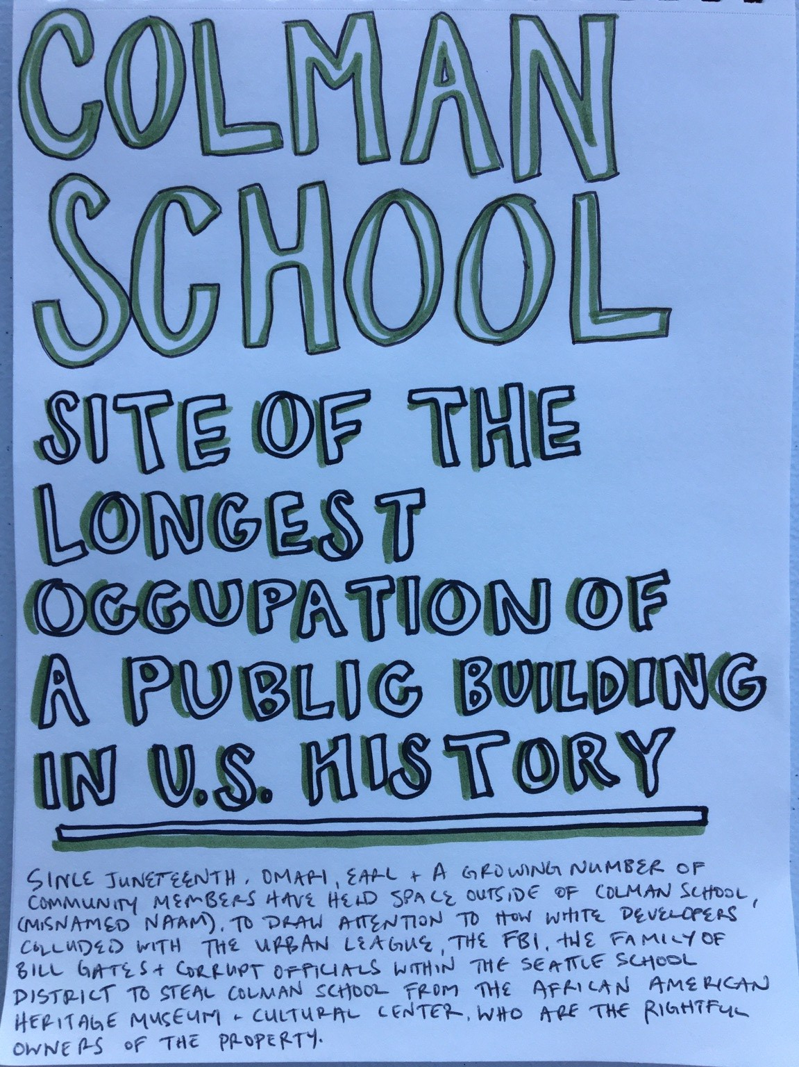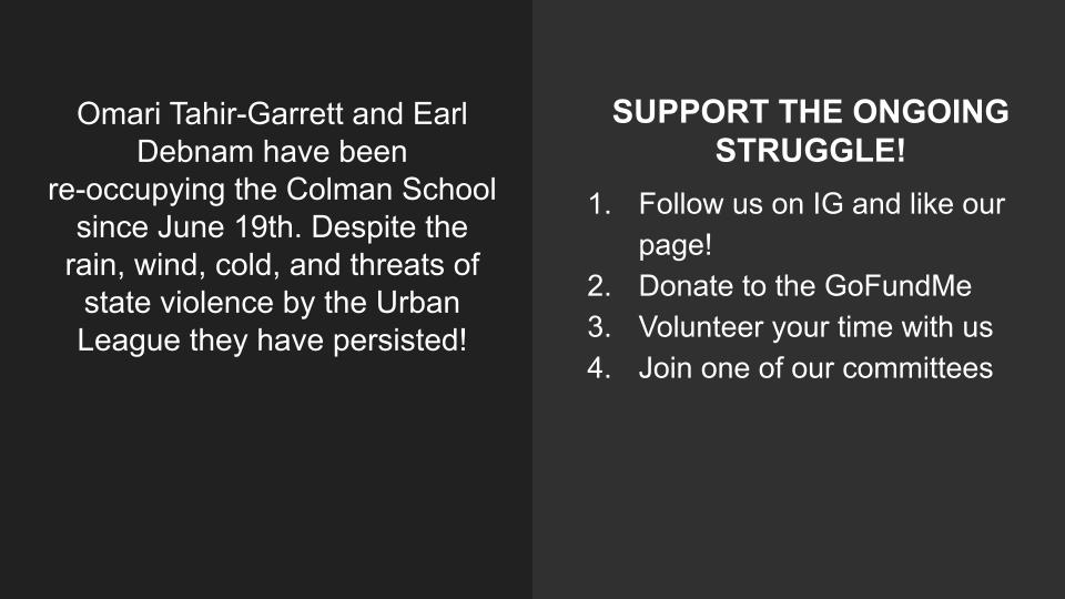 Below are documented facts regarding the on-going occupation/protest for proper acknowledgment of the African-American Heritage Museum and Cultural Center as the TRUE AND RIGHTFUL owner of the Colman school building and subsequent release of the building to the African-American Heritage Museum and Cultural Center.