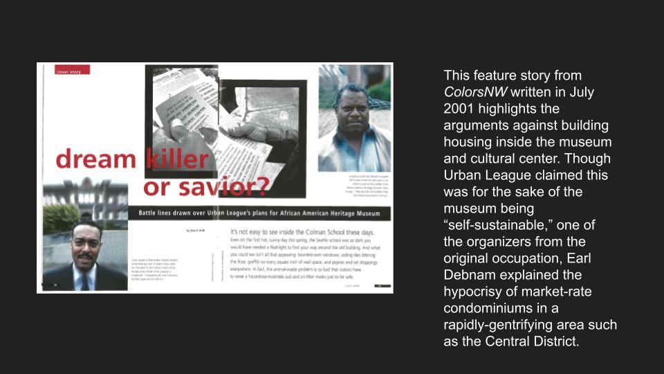 In December of 2006, the Urban League and the City of Seattle’s Greg Nickels administration signed an illegal covenant with one another to operate the building as an apartment complex instead of a museum. Page 18 of this covenant purports to give the City decision making authority over the operation while simultaneously denying that the City has any responsibility for the operation.