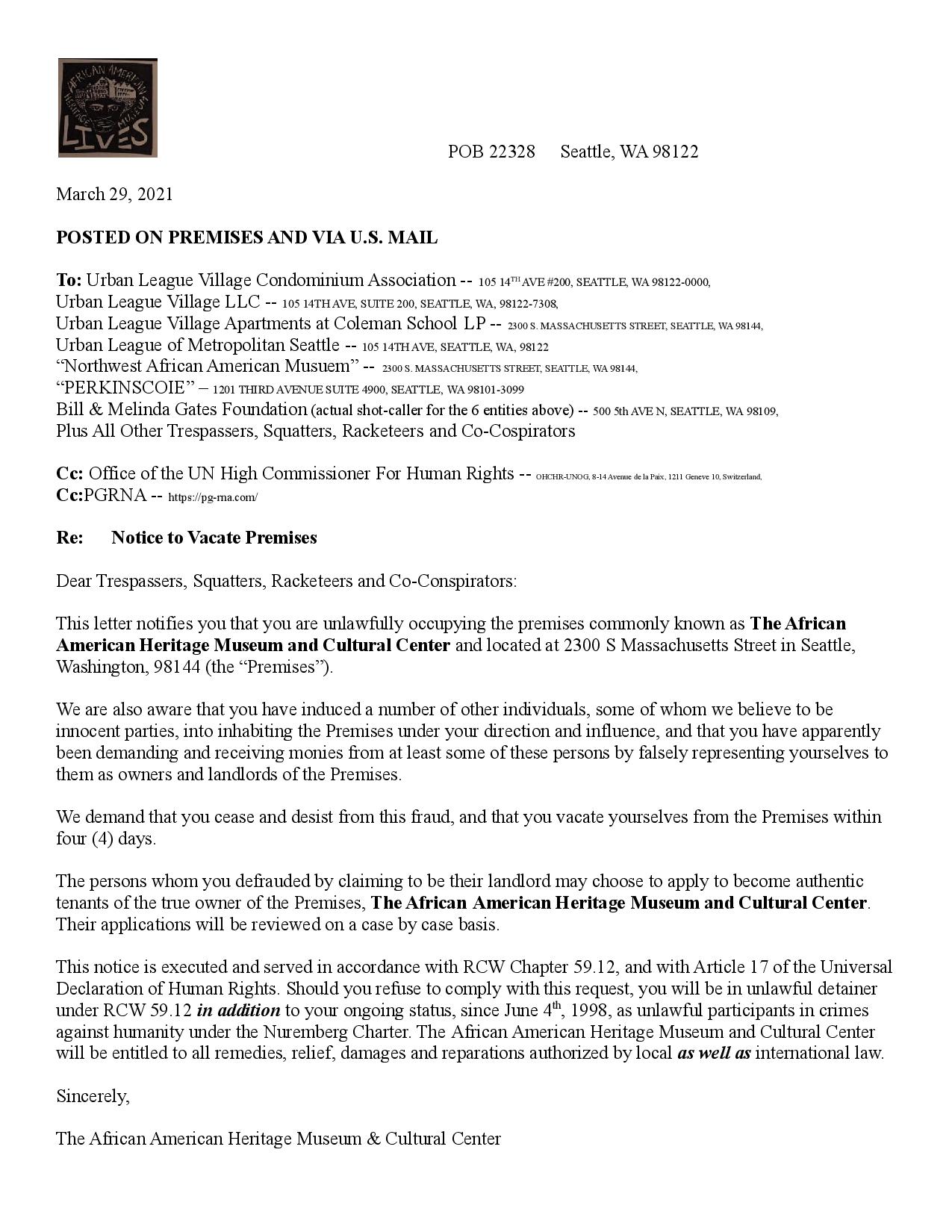 It is past time that the African American Heritage Museum and Cultural Center is returned to its rightful owners so that it may function in the capacity the founders envisioned. The service of a cultural center is needed now more than ever to help reconnect, rehabilitate, and transform the Seattle Black Community so that we may face and overcome current and future challenges.